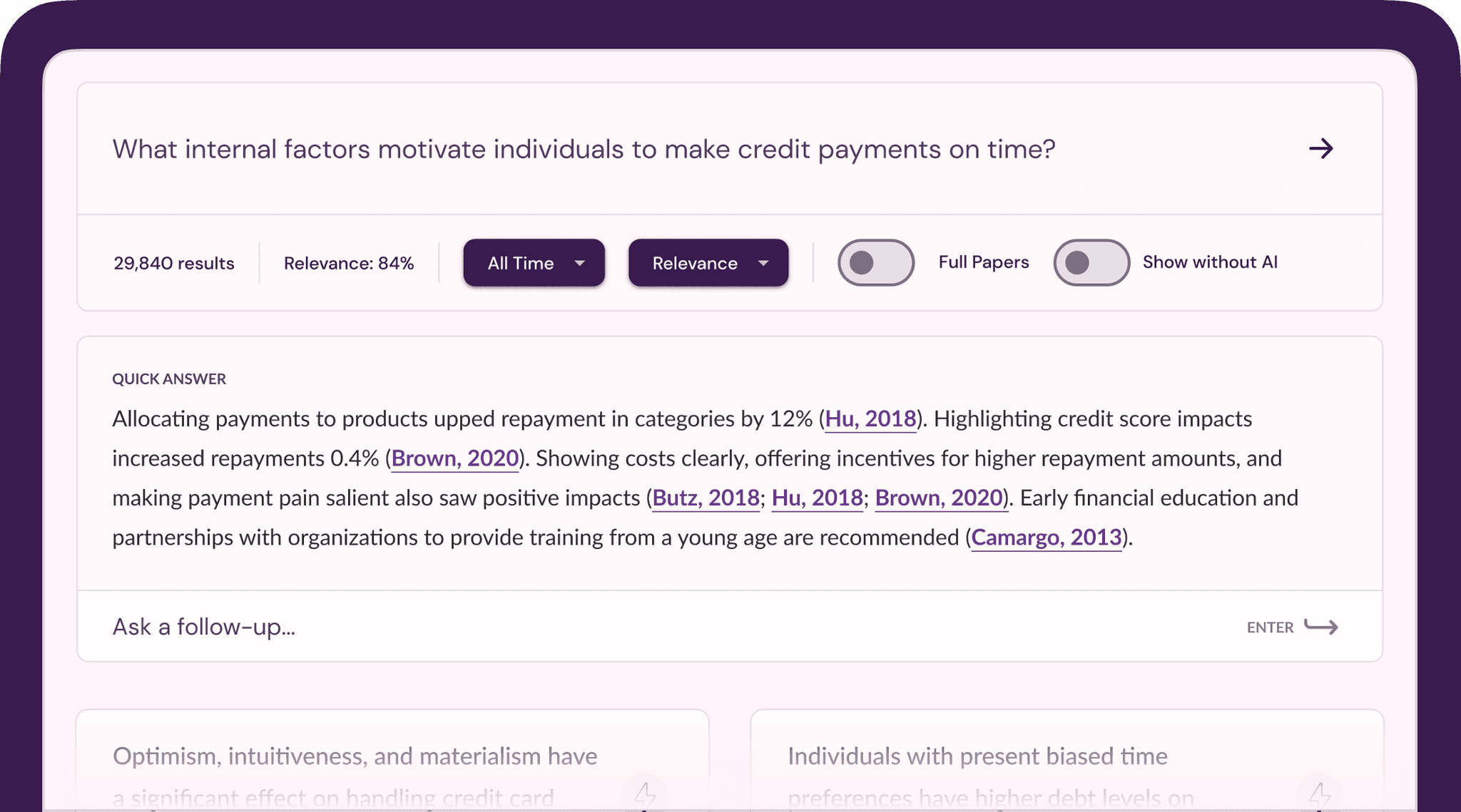 Literatür taramasına yapı kazandıran harika bir araştırma aracı. Yönlendirmeli iş akışı, özetleme ve izlenebilir atıflar sayesinde kanıta dayalı araştırmalar için ideal.